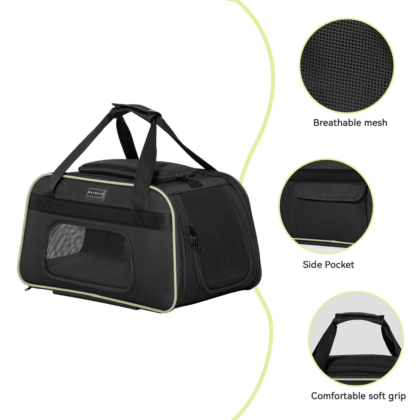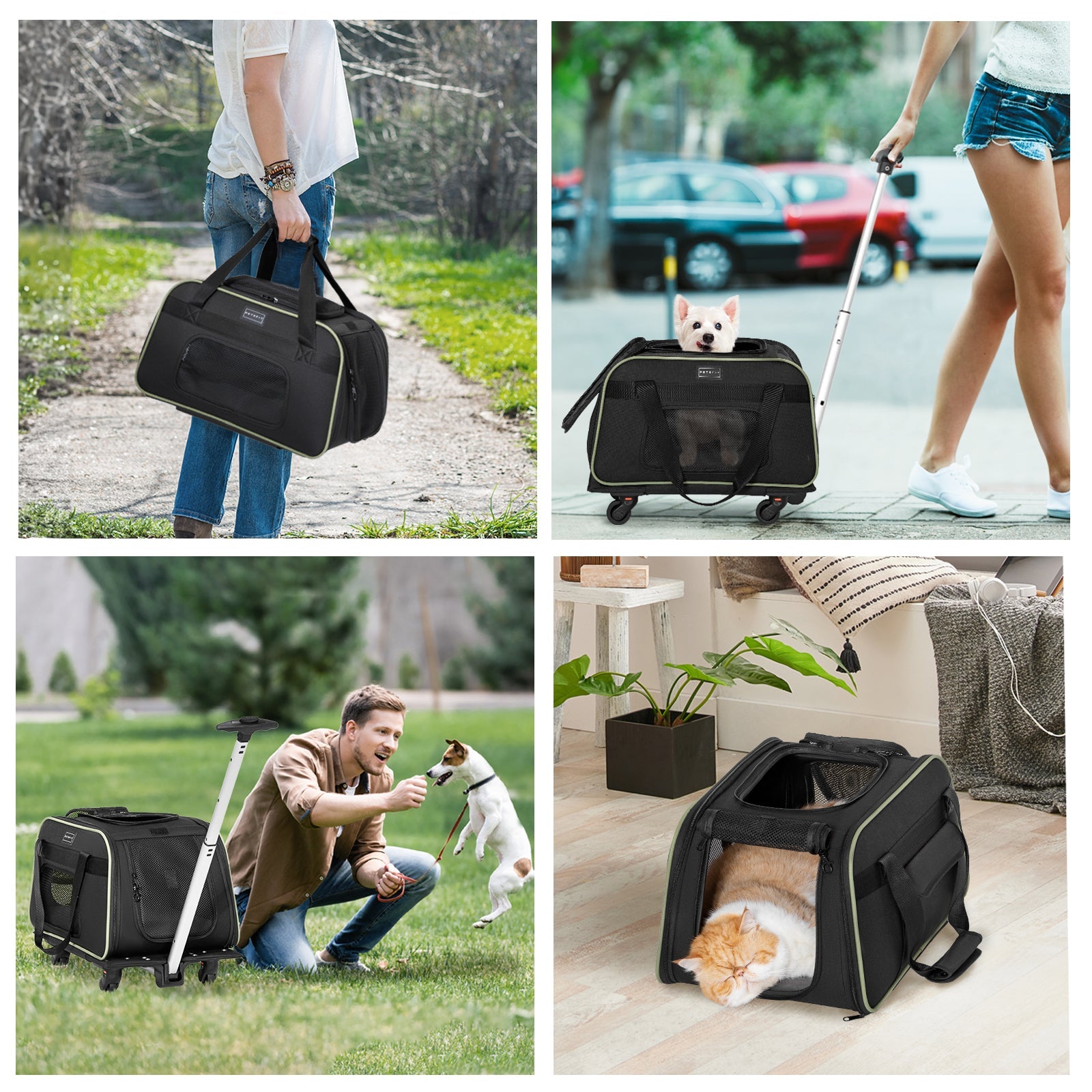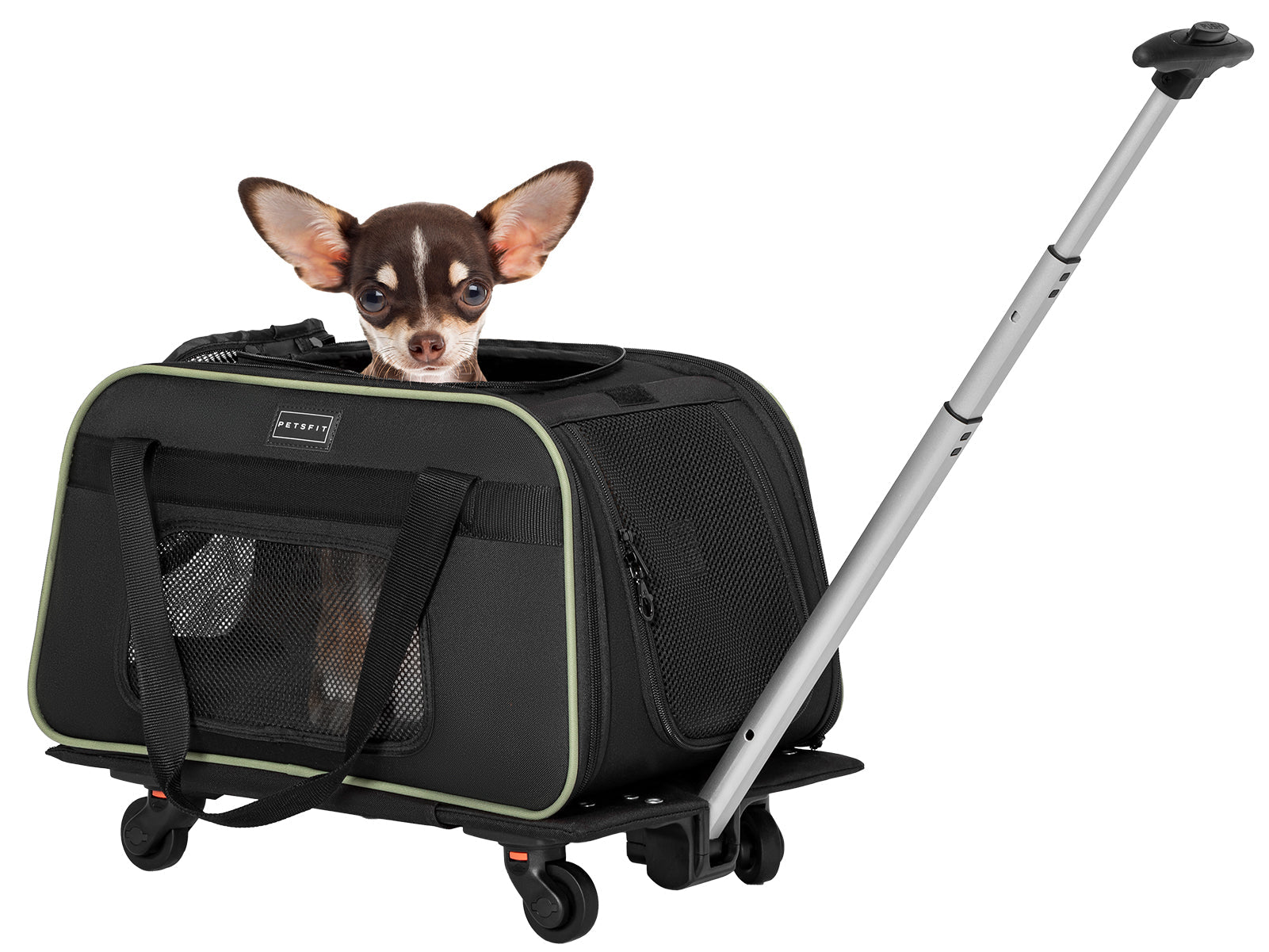 Multiple Uses: With its stylish and unique look, the PETSFIT Pet Travel Carrier with Wheels is perfect for vet visits or short road trips. It can also serve as a convenient dog carrier for walks or a temporary cat bed in emergencies, providing ample space for your furry friend. Be sure to check your airline's requirements before traveling.