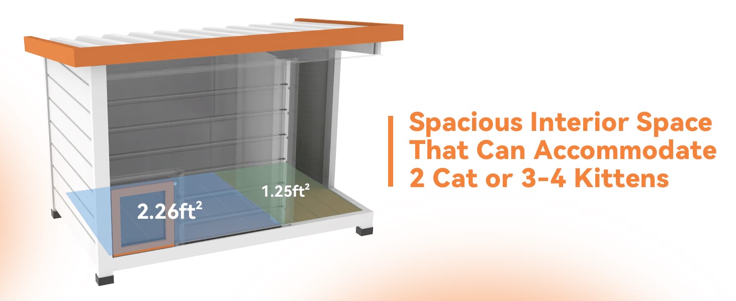 We are committed to caring for stray cats and providing them with a comfortable space. This outdoor cat house is designed to accommodate 1-2 stray cats, ensuring they have ample living space without compromising their comfort.