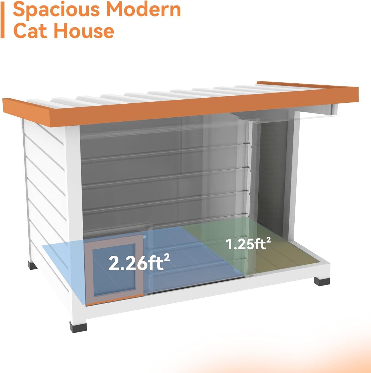 Introducing our Heated Cat House Outdoor, featuring a stylish blend of white and orange for a modern aesthetic. Designed to cater to your cat’s natural instinct for hiding, the entrance is cleverly tucked away inside the hallway, adding depth and intrigue.