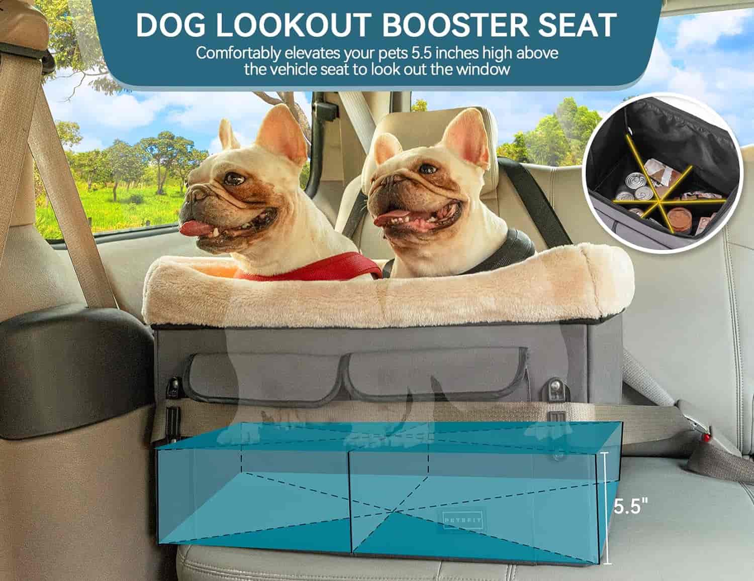 - [Sizing] With dimensions of 23" L x 16.5" W x 13.5" H, the dog booster car seat is suitable for a medium sized dog up to 45 pounds or 2 small pets. Please measure your pets before making a purchase to choose the ideal dog car seat size.